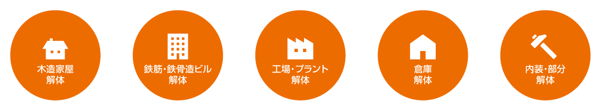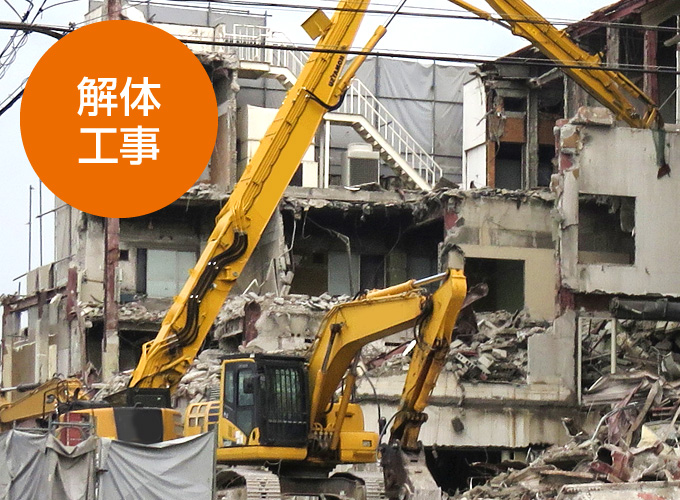 一般家屋や店舗、オフィスビル、工場、プラント、倉庫などあらゆる建築物の解体工事を行います。